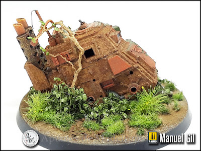 This abandoned head of an armoured Warhammer Sentinel is my latest finished work. The rust effects were created with AMMO's new U-RUST products. You can see this and other examples at the link How to use Corrosion Creator Set.